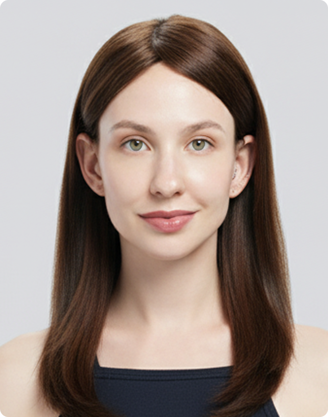 Gracias a la calidad del cabello natural y al diseño personalizado de la base, el resultado es una apariencia completamente realista y natural desde cualquier ángulo.