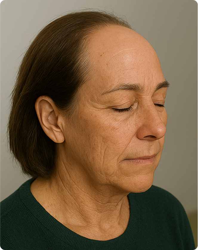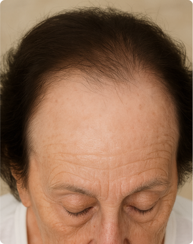 La alopecia androgenética en mujeres suele manifestarse en la parte superior de la cabeza, especialmente en la zona de la raya central, donde el cabello se va afinando progresivamente y se pierde densidad. Este tipo de caída capilar es común y puede tener un gran impacto emocional, ya que altera visiblemente el aspecto general del peinado.