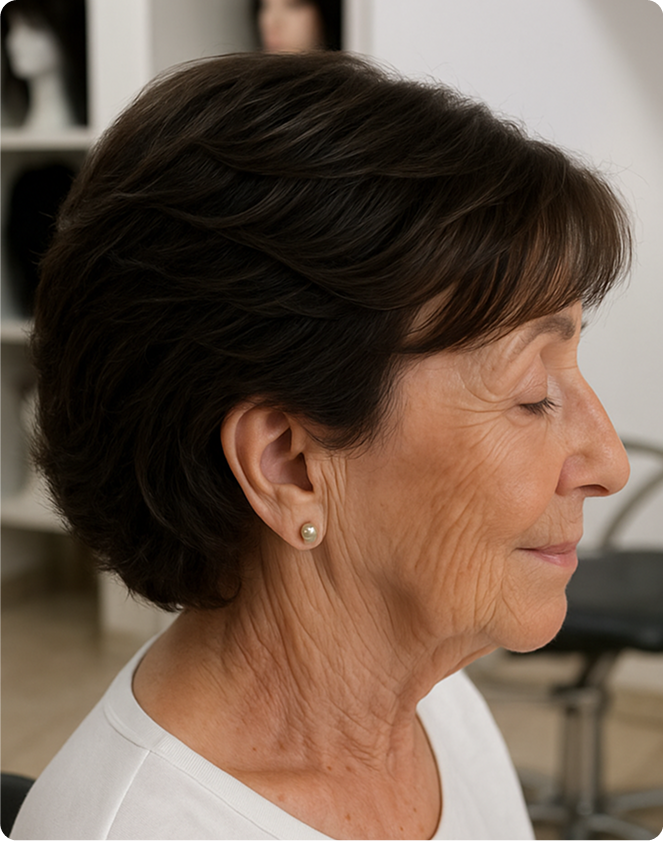 Todas nuestras prótesis capilares para mujer están fabricadas con pelo 100% natural, cuidadosamente seleccionado por su calidad, textura y comportamiento realista. Se utiliza una técnica de implantación con doble nudo, que proporciona una mayor durabilidad sin comprometer la naturalidad.