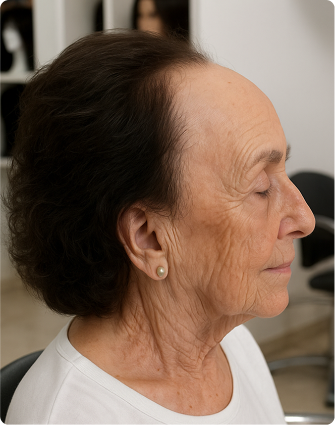 Gracias a su diseño ergonómico, este topper de pelo natural se adapta perfectamente a la forma de la cabeza, aportando confort incluso en días calurosos o de uso prolongado. Su grosor mínimo evita la sensación de calor o pesadez, ideal para quienes buscan comodidad sin renunciar al realismo.