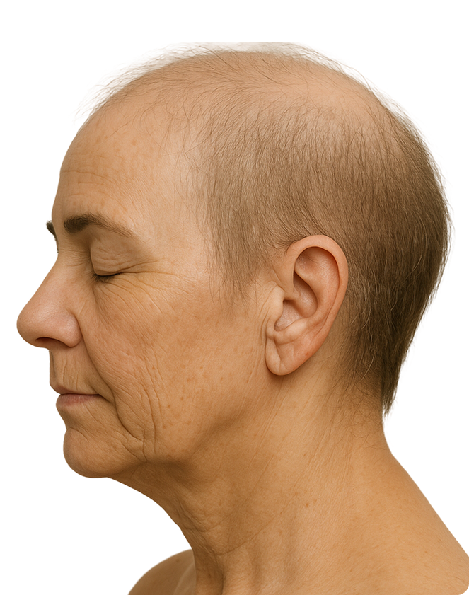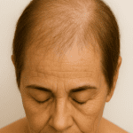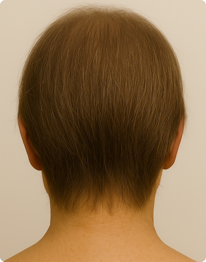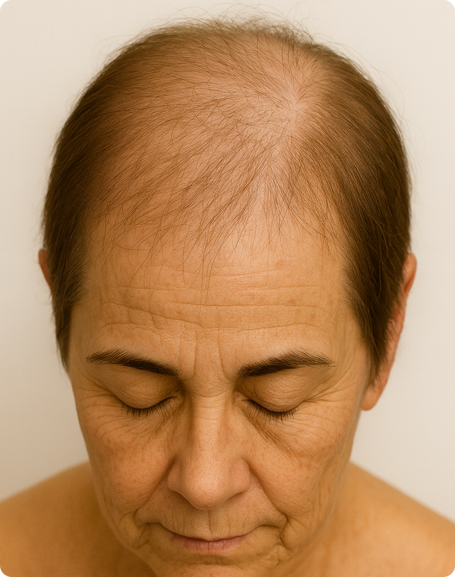 La alopecia androgenética en mujeres suele manifestarse en la parte superior de la cabeza, especialmente en la zona de la raya central, donde el cabello se va afinando progresivamente y se pierde densidad. Este tipo de caída capilar es común y puede tener un gran impacto emocional, ya que altera visiblemente el aspecto general del peinado.